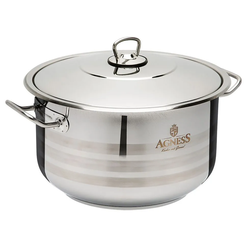 КАСТРЮЛЯ AGNESS НЕРЖАВЕЮЩАЯ СТАЛЬ, 16.5 Л, ДИАМЕТР=32 СМ. ВЫСОТА=22 СМ. (КОР=2ШТ.)