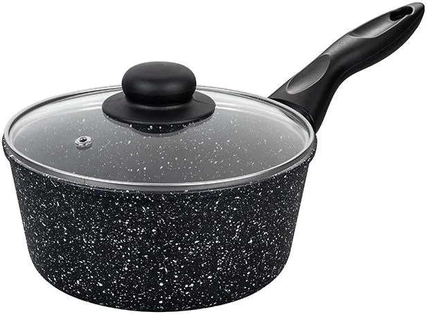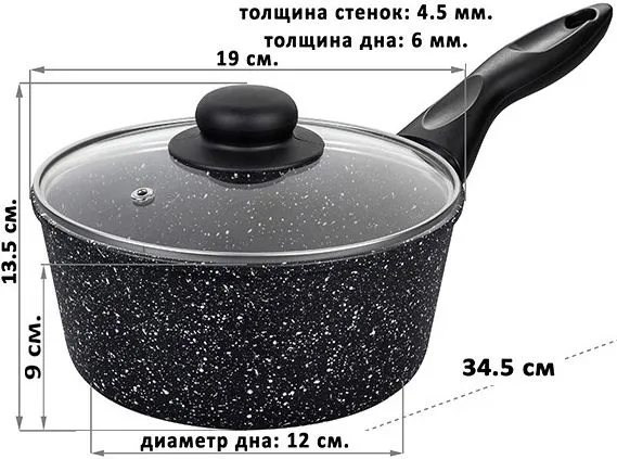 Ковш 1,5 л ГАРМОНИЯ ВКУСА "Черный мрамор", с крышкой ф18, высота без крышки - 9 см, длина ручки - 15,5 см