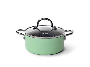 4237 FISSMAN Кастрюля MINI CHEF 1,3л 16x7см с крышкой, цвет ЗЕЛЕНЫЙ ЧАЙ (алюминий с антипригарным покрытием TouchStone) Крышка - стекл Ручки - нерж.ст