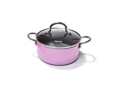 4238 FISSMAN Кастрюля MINI CHEF 1,3л 16x7см с крышкой, цвет ЧАЙНАЯ РОЗА (алюминий с антипригарным покрытием TouchStone) Крышка - стекло Ручки - нерж
