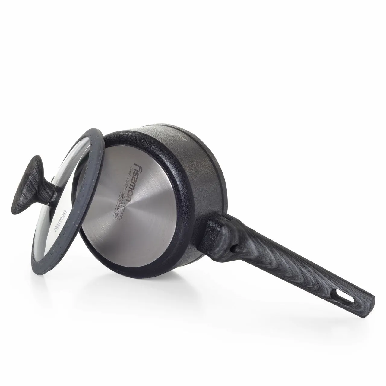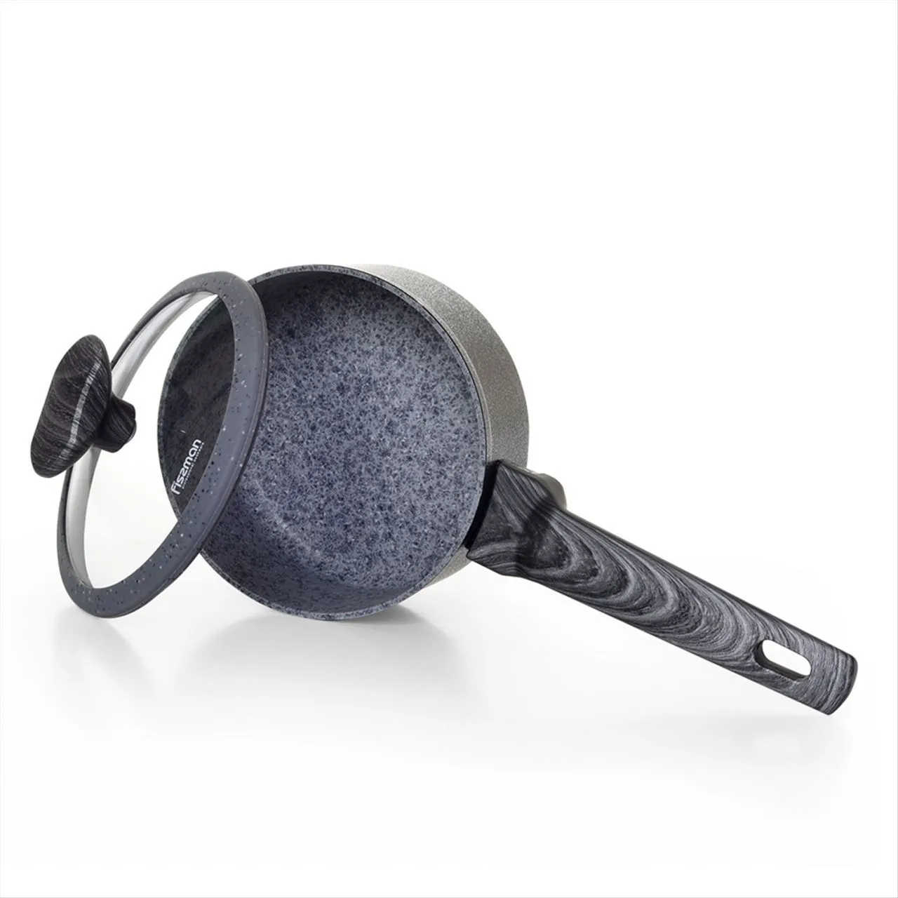 5024 FISSMAN Ковш CHARM STONE 1,4л 16x7,8см с крышкой (алюминий с антипригарным покрытием EcoStone) Ручки - бакелит Крышка - стекло Индукция