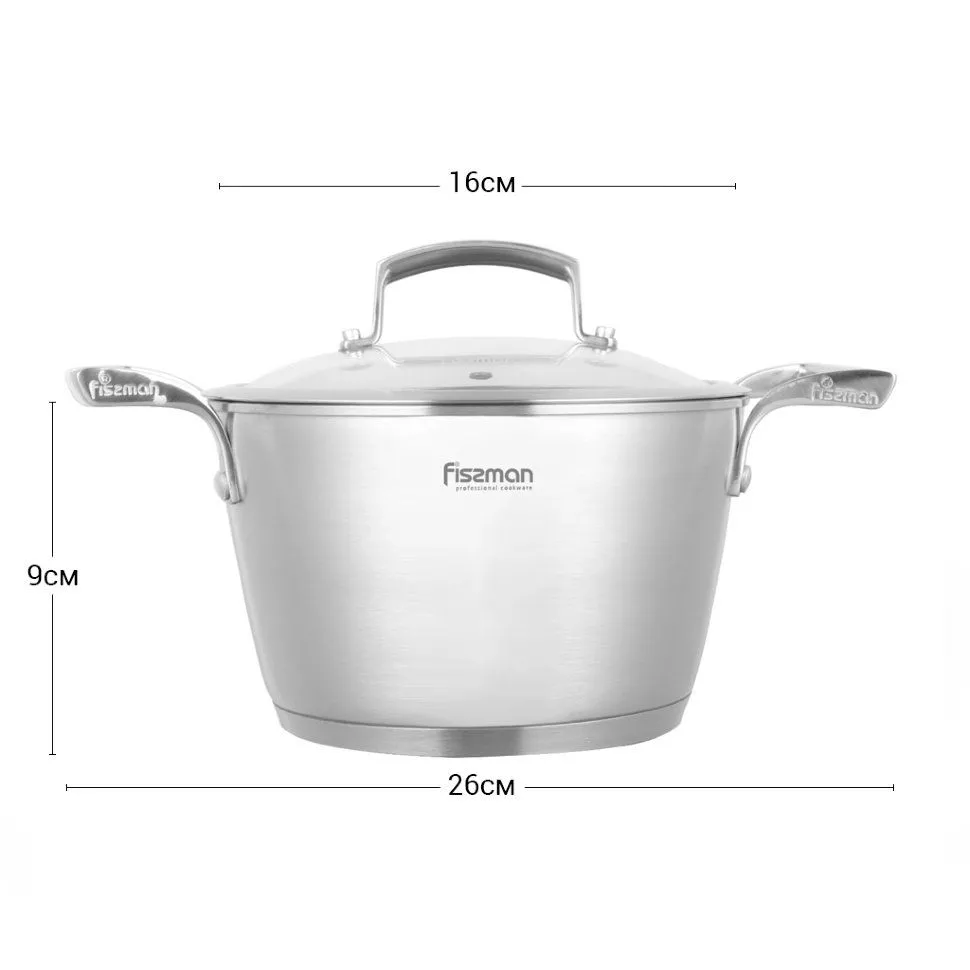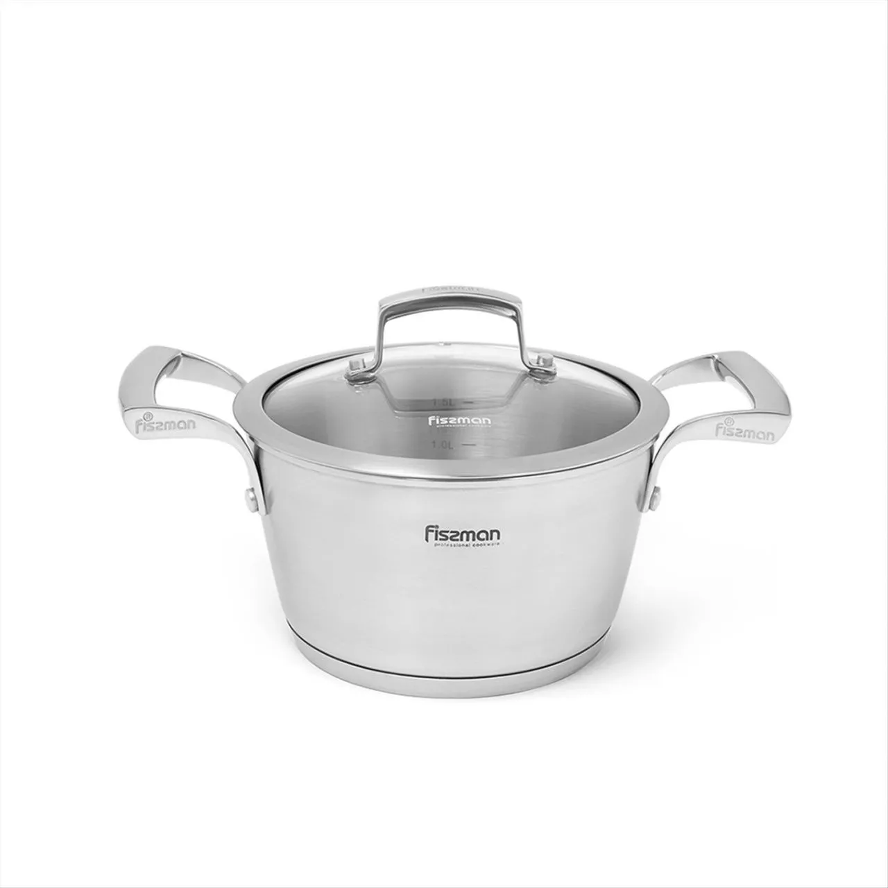 5361 FISSMAN Кастрюля MILLENIUM 1,5л 16x9см со стеклянной крышкой (нерж.сталь) Ручки - нерж.сталь Крышка - стекло с ободком Индукция Термоаккумул