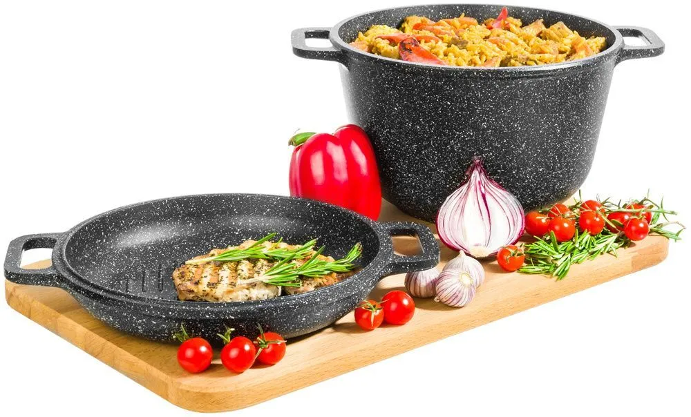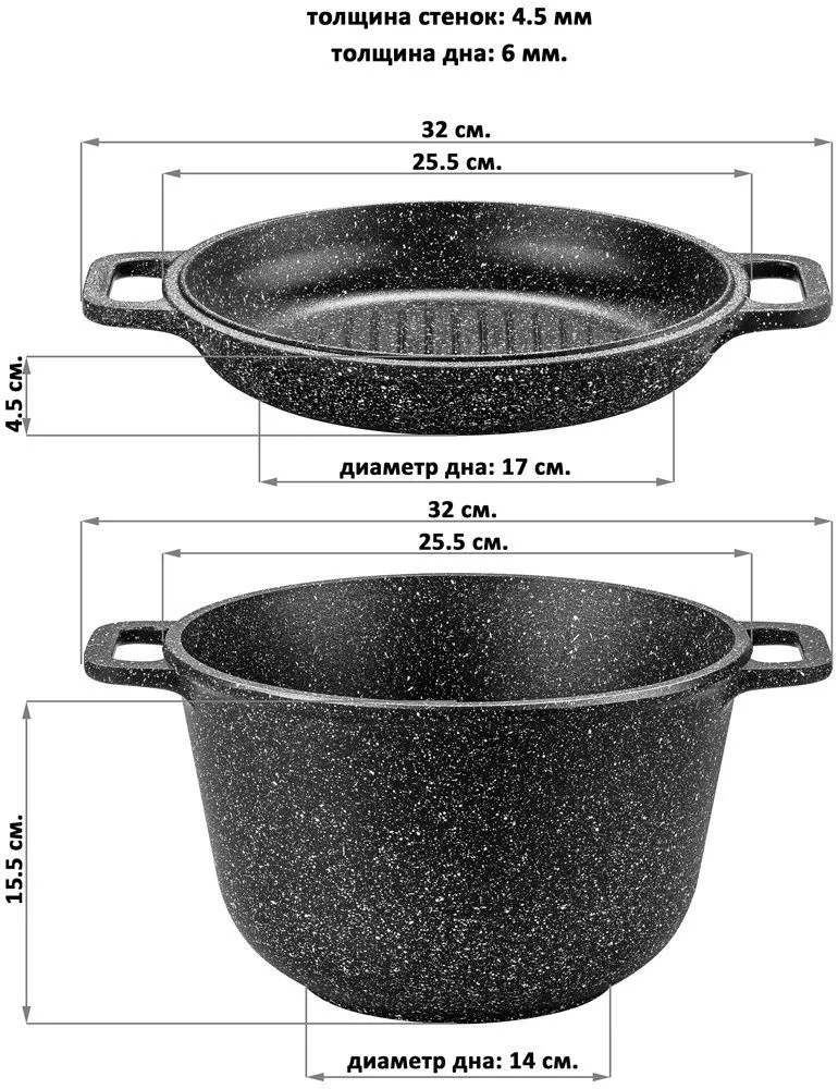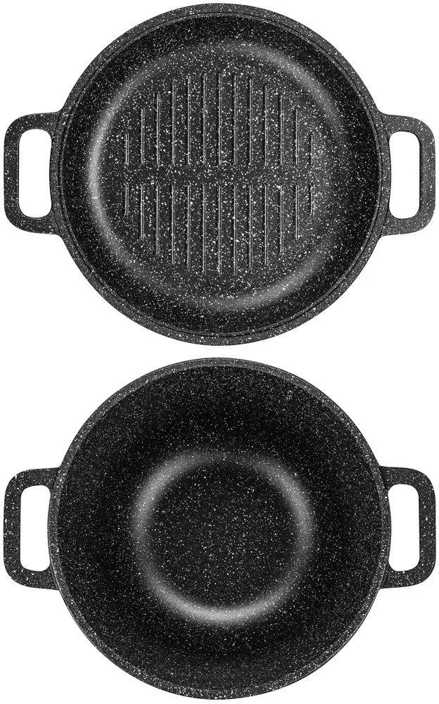 Казан 5 л ГАРМОНИЯ ВКУСА "Черный мрамор" 32*25,5*20 см, с крышкой сковородой-гриль, размер казана без крышки - 32*25,5*15,5 см