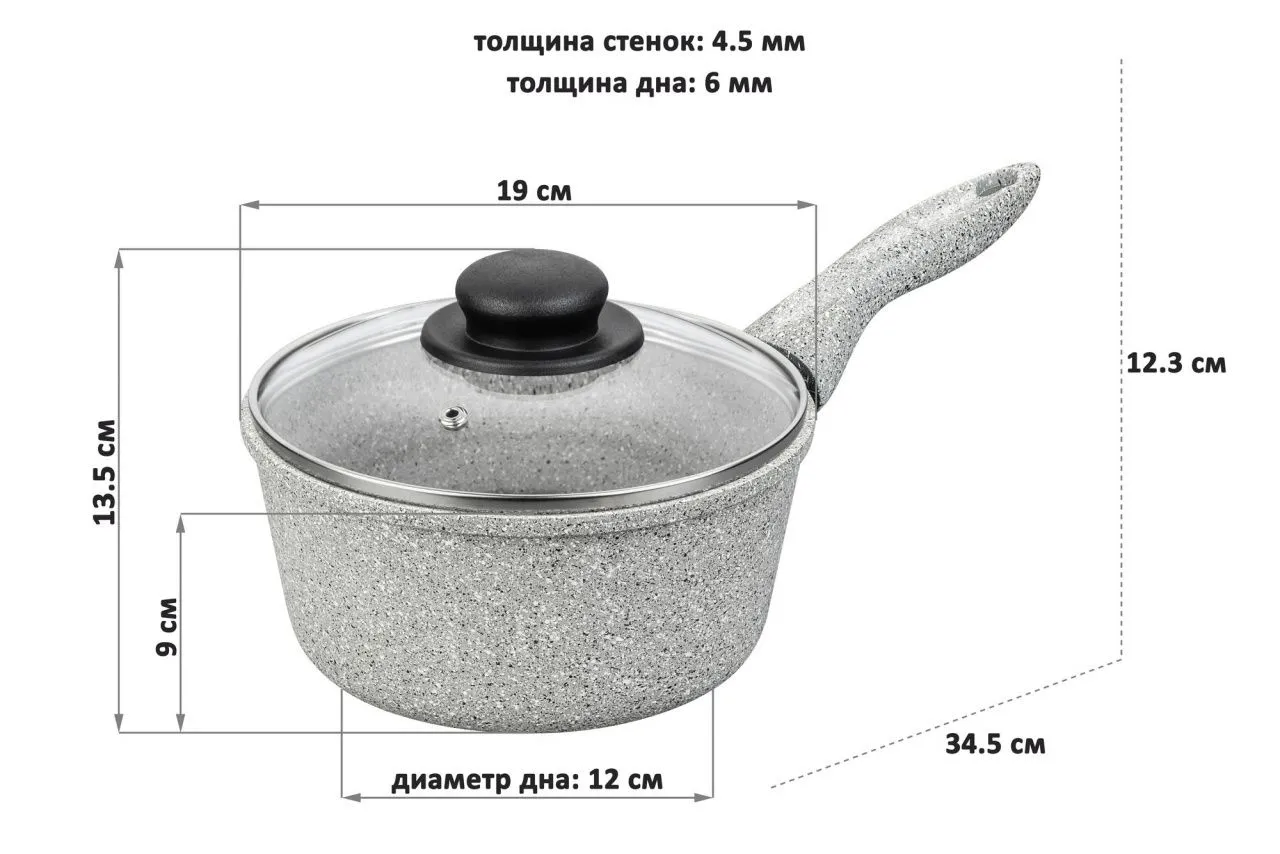 Ковш 1,5 л ГАРМОНИЯ ВКУСА "Серый агат" 34,5*19*13,5 см, с крышкой ф18, высота без крышки - 9 см, длина ручки - 15,5 см, высота до ручки - 12,3 см, диа