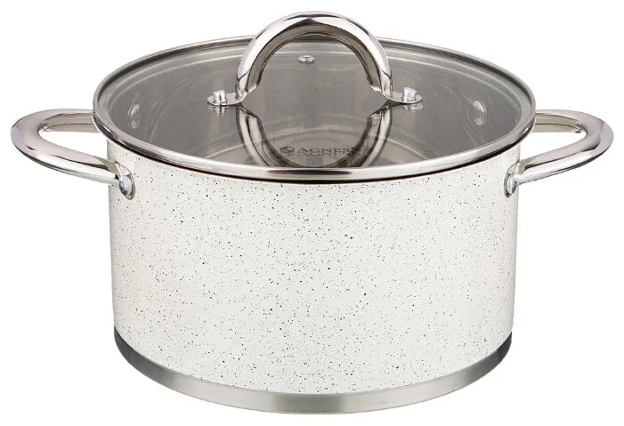 кастрюля Agness Со Стеклянной Крышкой, Нерж.сталь, Серия Арктик 6,0л 24х13,5см
