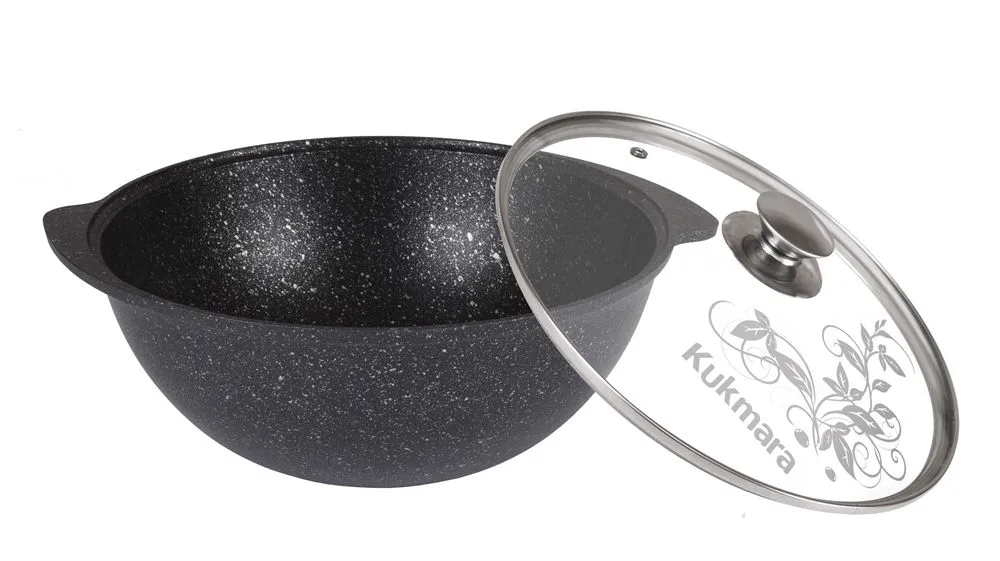 Казан для плова 4,5л со стекл.крышкой, АП (темный мрамор)
