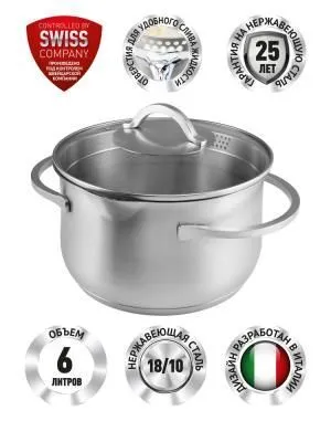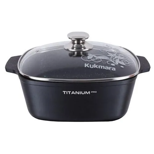Кастрюля 6,5л квадратная 280*280 со стеклянной крышкой, АП, линия "Titanium pro"