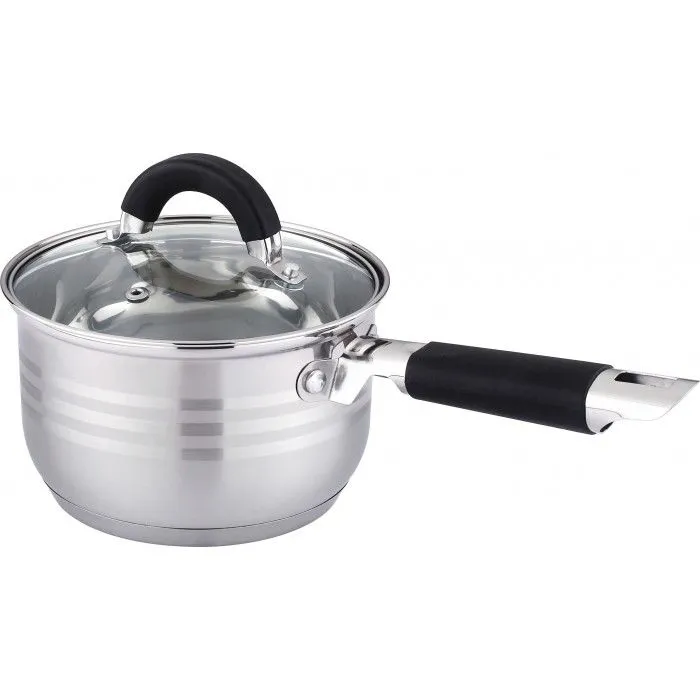 КОВШ AGNESS СО СТЕКЛ.КРЫШКОЙ СИЛИКОН. РУЧКОЙ 1,8 Л 16*9,5 СМ, СЕРИЯ CLASSIC НЕРЖ.СТАЛЬ, ИНДУКЦИЯ 937-127