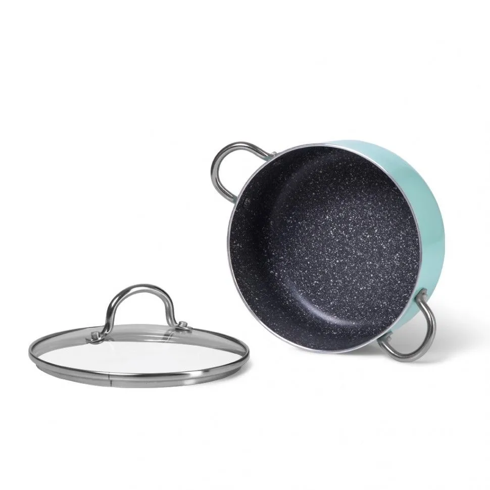 4257 FISSMAN Кастрюля MINI CHEF 1,8л; 18x8см с крышкой, цвет АКВАМАРИН (алюминий с антипригарным покрытием TouchStone) Крышка - стекло; Ручки - нерж.с
