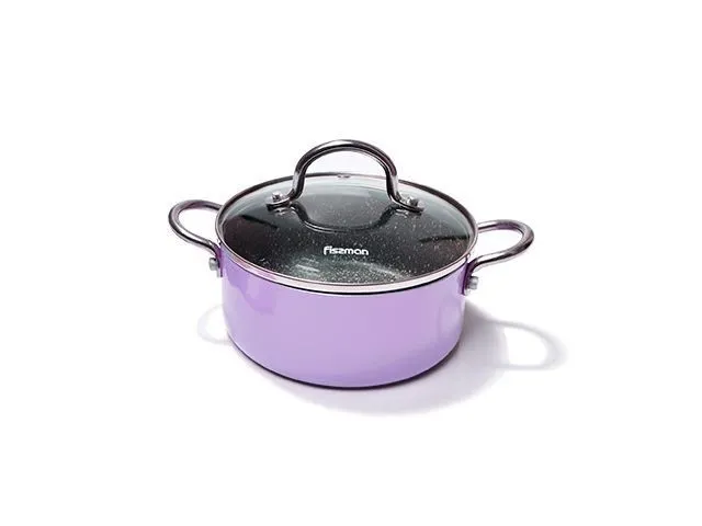 4259 FISSMAN Кастрюля MINI CHEF 1,8л; 18x8см с крышкой, цвет ЛИЛОВЫЙ (алюминий с антипригарным покрытием TouchStone) Крышка - стекло; Ручки - нерж.ста