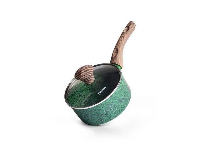 4317 FISSMAN Ковш MALACHITE 1,4л; 16x7,8см с крышкой (с антипригарным покрытием EcoStone) Ручки - бакелит; Крышка - стекло; Индукция
