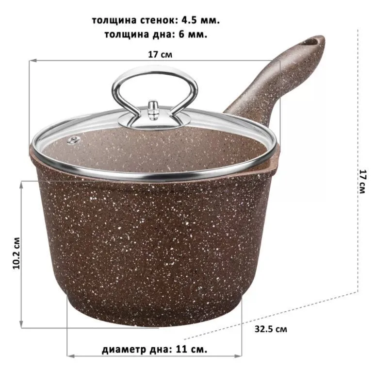 Ковш 1,5 л "Гранит" с носиком 32,5*17,8*17 см, с крышкой ф16, покрытие 3-х слойное а/п Quantanium