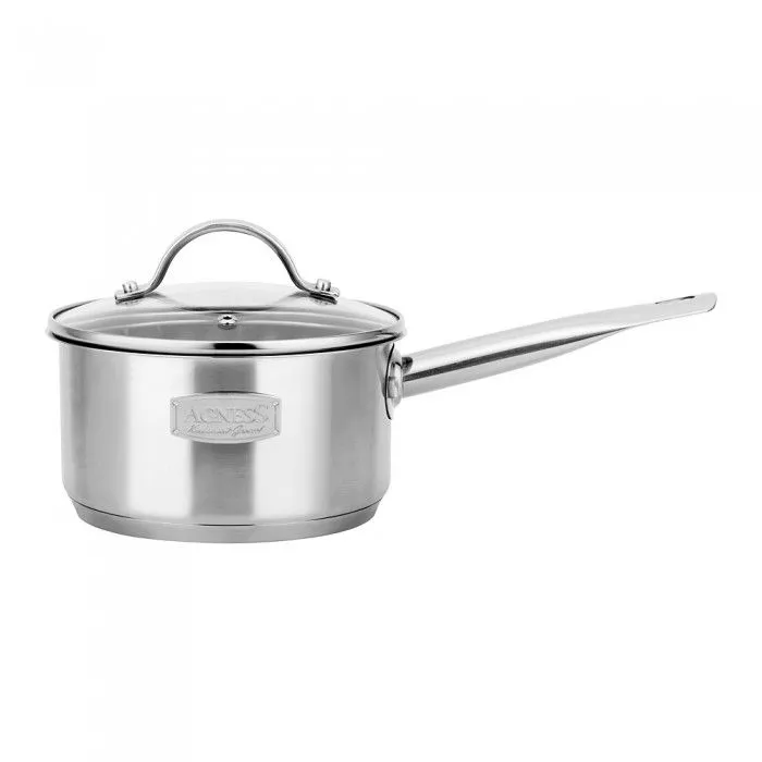 Ковш Agness со стеклянной крышкой, нерж.сталь, 14*7см, 1,0л серия craft collection, толщина стенок 0,5 мм, капсульное дно 4,0 мм 914-100