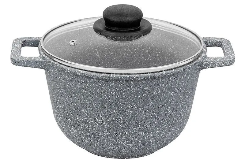 #Казан 3 л ГАРМОНИЯ ВКУСА "Серый мрамор" 28*21,5*18,5 см 3 л, с крышкой ф20, высота без крышки - 13 см, диаметр дна - 10,5 см - покрытие - 2-х слойное