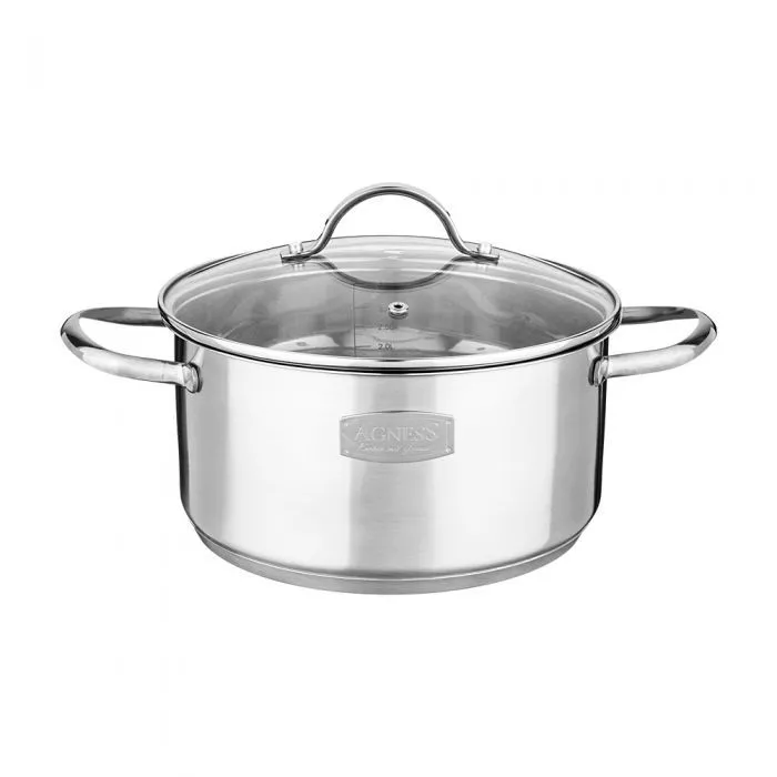 КАСТРЮЛЯ AGNESS СО СТЕКЛЯННОЙ КРЫШКОЙ, НЕРЖ.СТАЛЬ, 3,0Л 20Х10СМ СЕРИЯ CRAFT COLLECTION 914-104