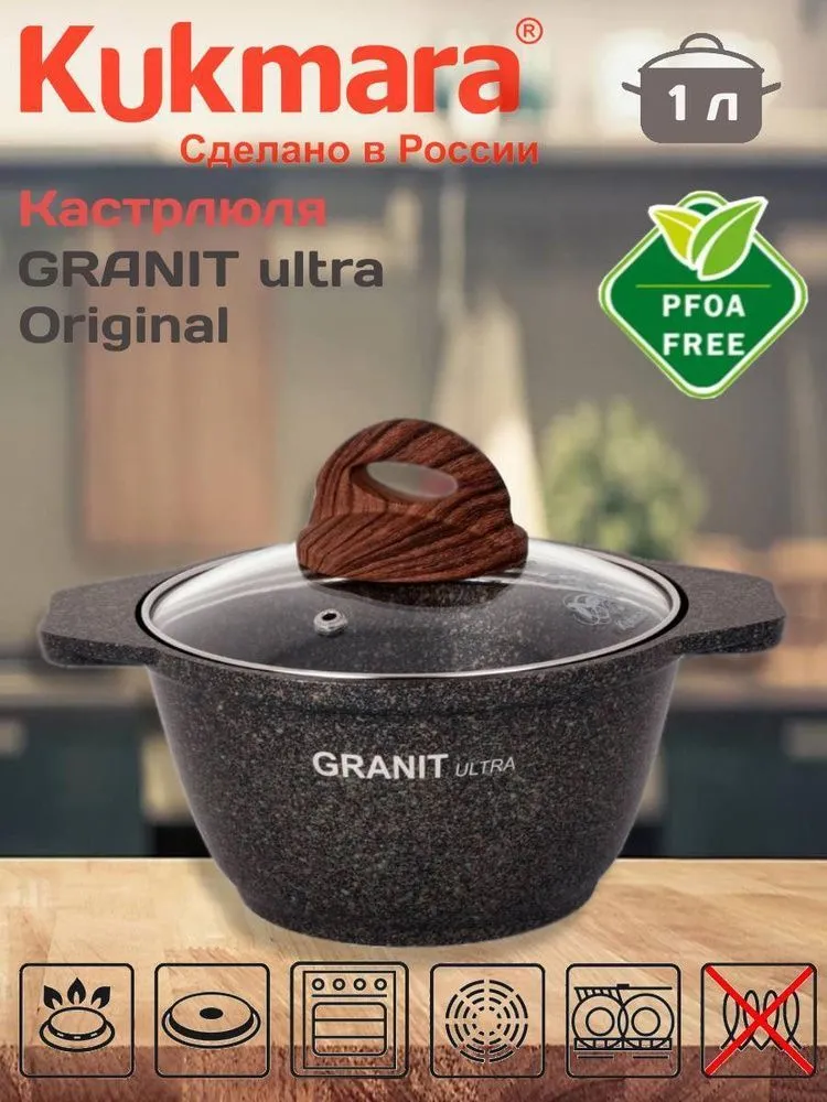 Кастрюля 1л со стеклянной крышкой АП линия "Granit ultra" ( original )