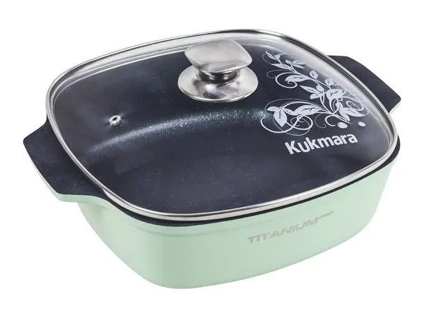 Кастрюля 5,5л квадратная 260*260 со стеклянной крышкой, АП, линия "Titanium pro" induction (green)
