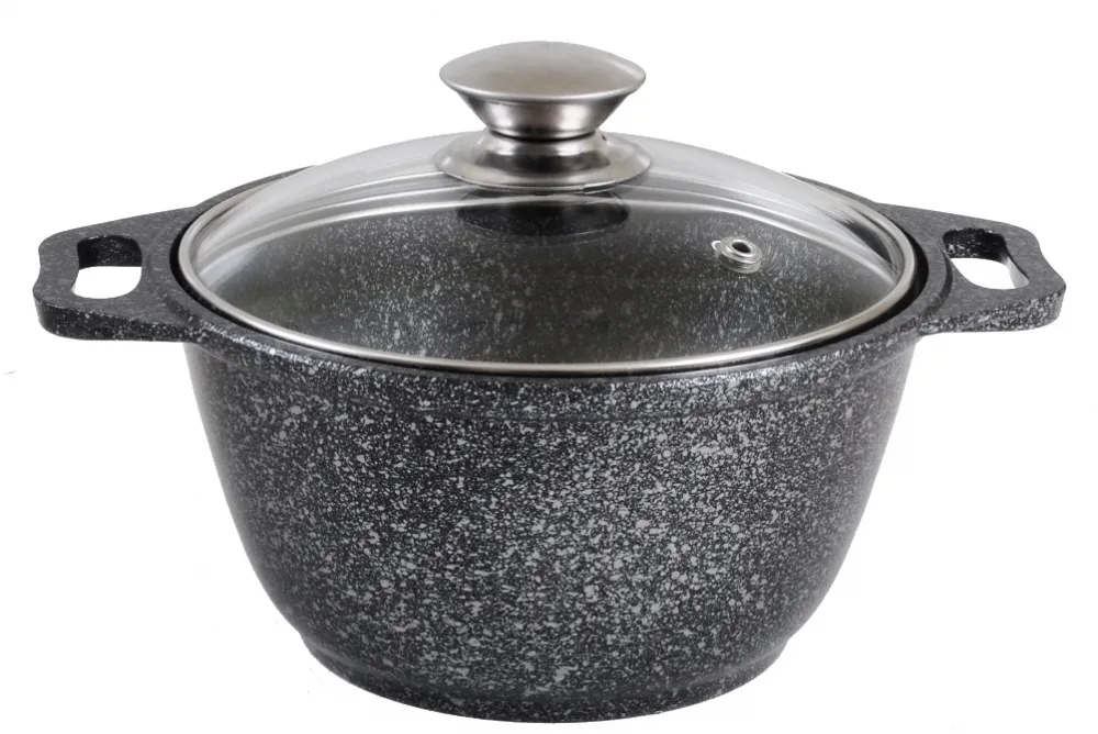 Кастрюля 1л со стеклянной крышкой, АП (темный мрамор) кмт12а