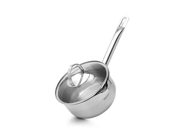 5205 FISSMAN Ковш CALLISTO 1,5л; 16x8см (нерж.сталь) Носик для слива жидкости; Крышка - стекло с отверстием для паровыпуска; Индукция; Термоаккумулир