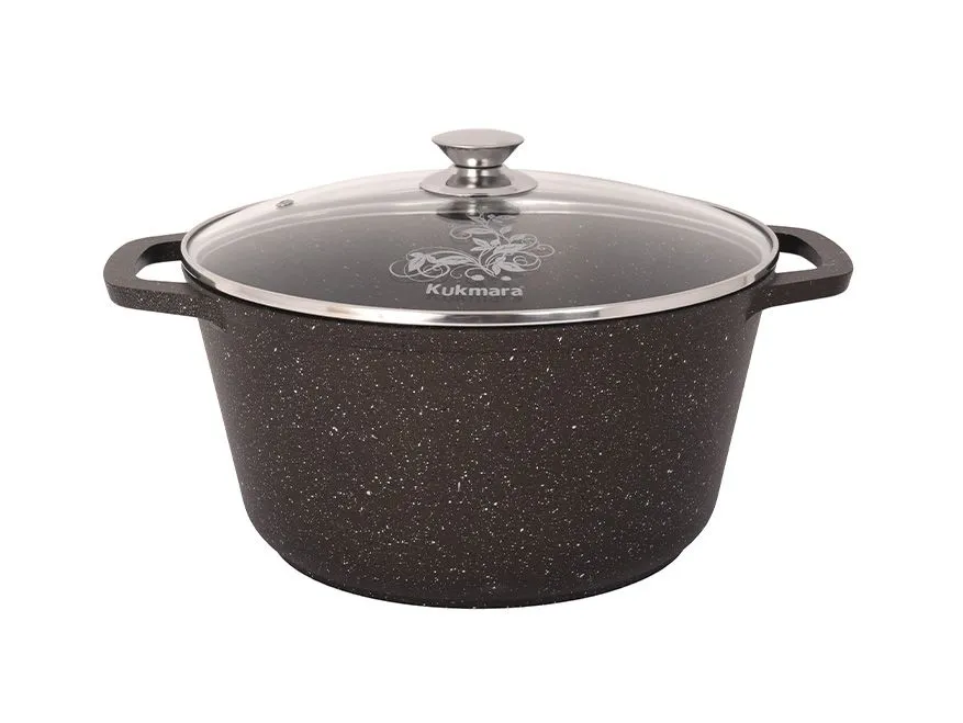 Кастрюля 6,5л со стеклянной крышкой АП (кофейный мрамор) кмк652а