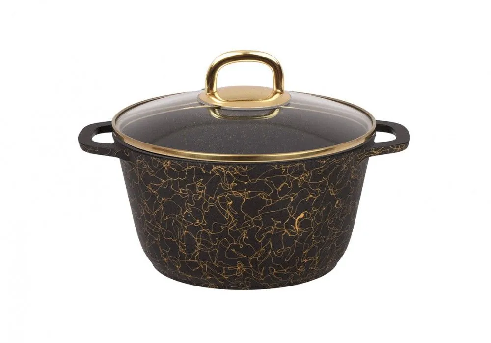 #Кастрюля 3,5л со стеклянной крышкой, АП линия "Грация" (черный/золото