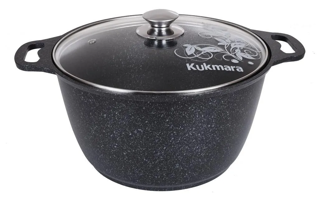 Кастрюля 6л со стеклянной крышкой, АП (темный мрамор) кмт62-1а
