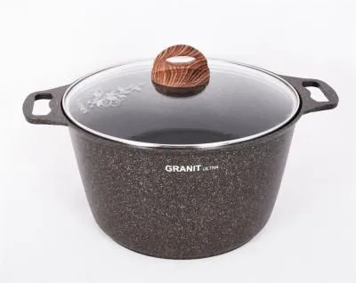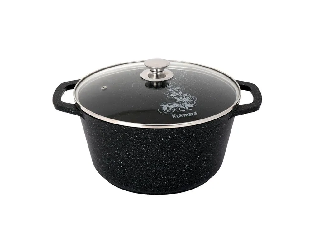 Кастрюля 6,5л со стеклянной крышкой, АП (темный мрамор) кмт652а