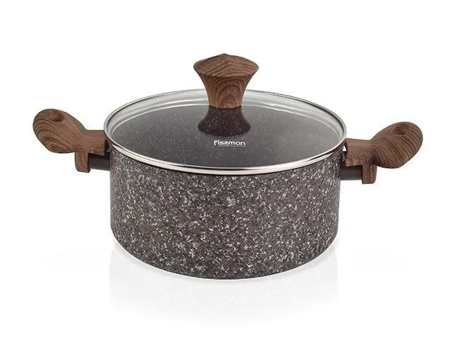 #4870 FISSMAN Кастрюля MAGIC BROWN 4,7л; 24x10,9см со стеклянной крышкой (с антипригарным покрытием EcoStone) Ручки - бакелит; Крышка стекло; Индукци