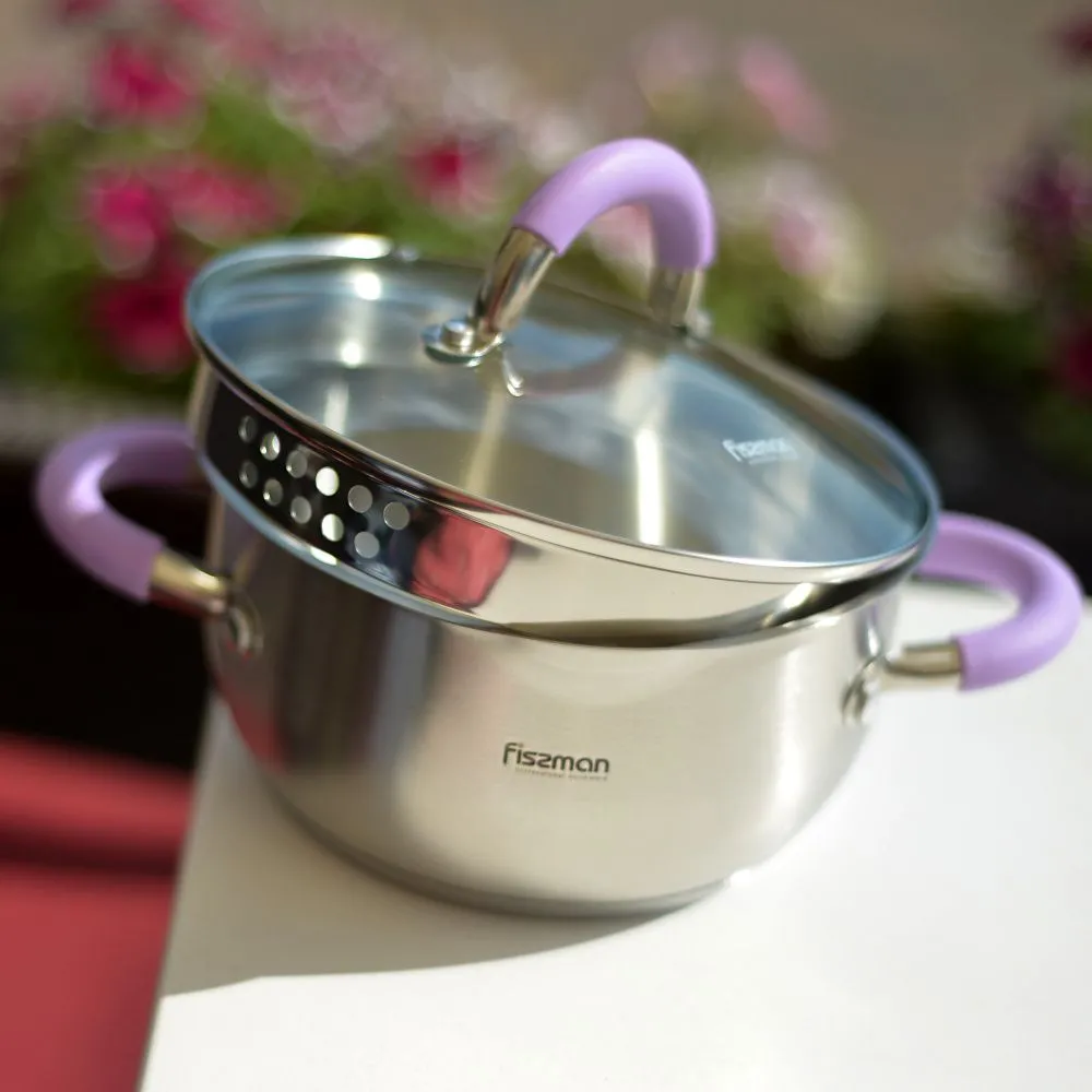 #5482 FISSMAN Кастрюля ANNETTE 4,7 л; 24x12,5 см с крышкой (нерж.сталь) Ручки - нерж.сталь, силикон; Крышка - стекло; Индукция; Термоаккумулирующее