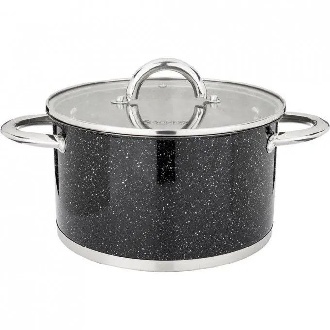 КАСТРЮЛЯ AGNESS СО СТЕКЛ КРЫШКОЙ, НЕРЖ, BLACK MARBLE 4,6Л 22Х12,5СМ ЦВЕТ: ЧЁРНЫЙ МРАМОР