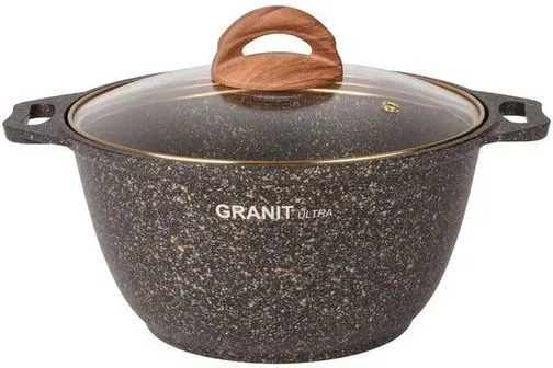 Кастрюля 4л со стекл. крышкой, АП линия "Granit ultra" (black-gold) кгбг42а