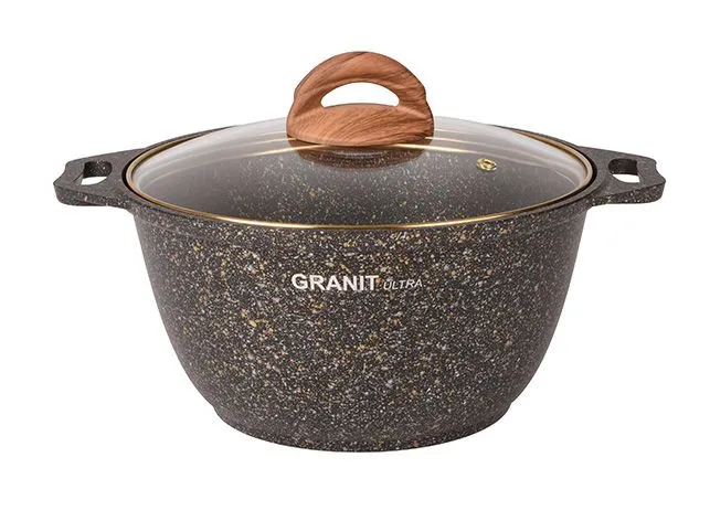 Кастрюля 3л со стекл. крышкой, АП линия "Granit ultra" (black-gold) кгбг32а