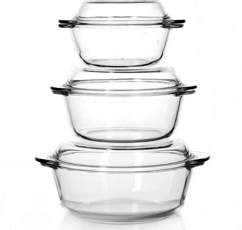 Набор кастрюль для запекания из жаропроч. стекла (1,45/2,1/3,15 л) БОРЖАМ 159005/483024