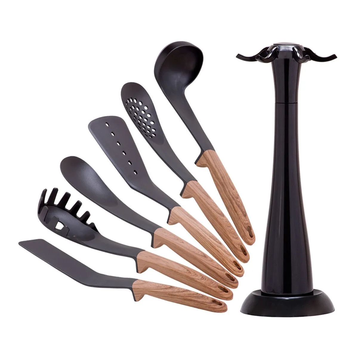 Набор кухонных принадлежностей с подставкой 7 предметов нейлоновые с ручкой под дерево 5235