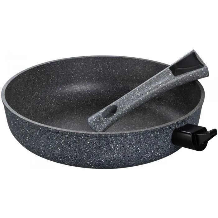Сковорода глубокая 26 см "Мрамор" 47*27*9,5 см, съемная ручка, без крышки, ручка - 20 см, высота сковороды - 6,5 см, покрытие - 3-х слойное антипригар