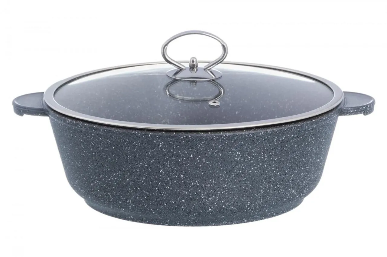 Жаровня (сотейник) 26 см "Мрамор" 32,5*27*15 см, 3,7 л, с крышкой ф26, покрытие - 3-х слойное антипригарное (Quantanium)