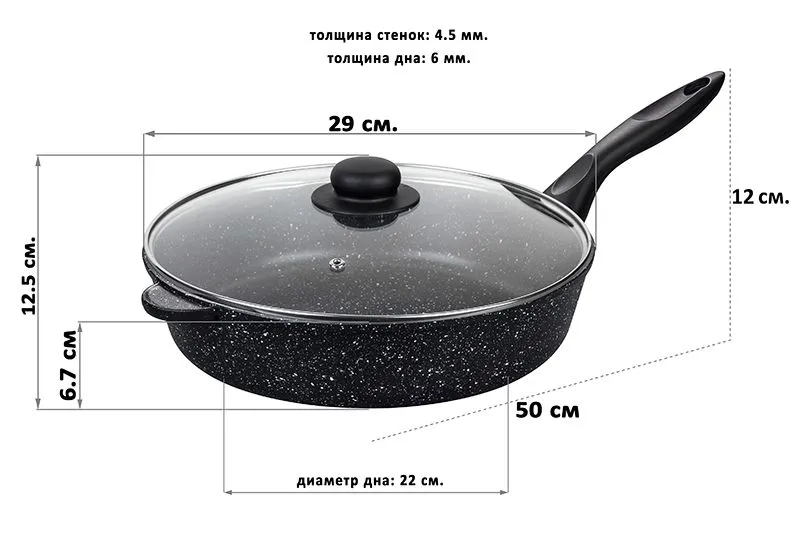 Сковорода глубокая 28 см "Гранит МЕЧТА" 52*29*12,5 см, с крышкой ф28, ручка - 20 см, 2-х слойн антипр покр Kaplon Classic