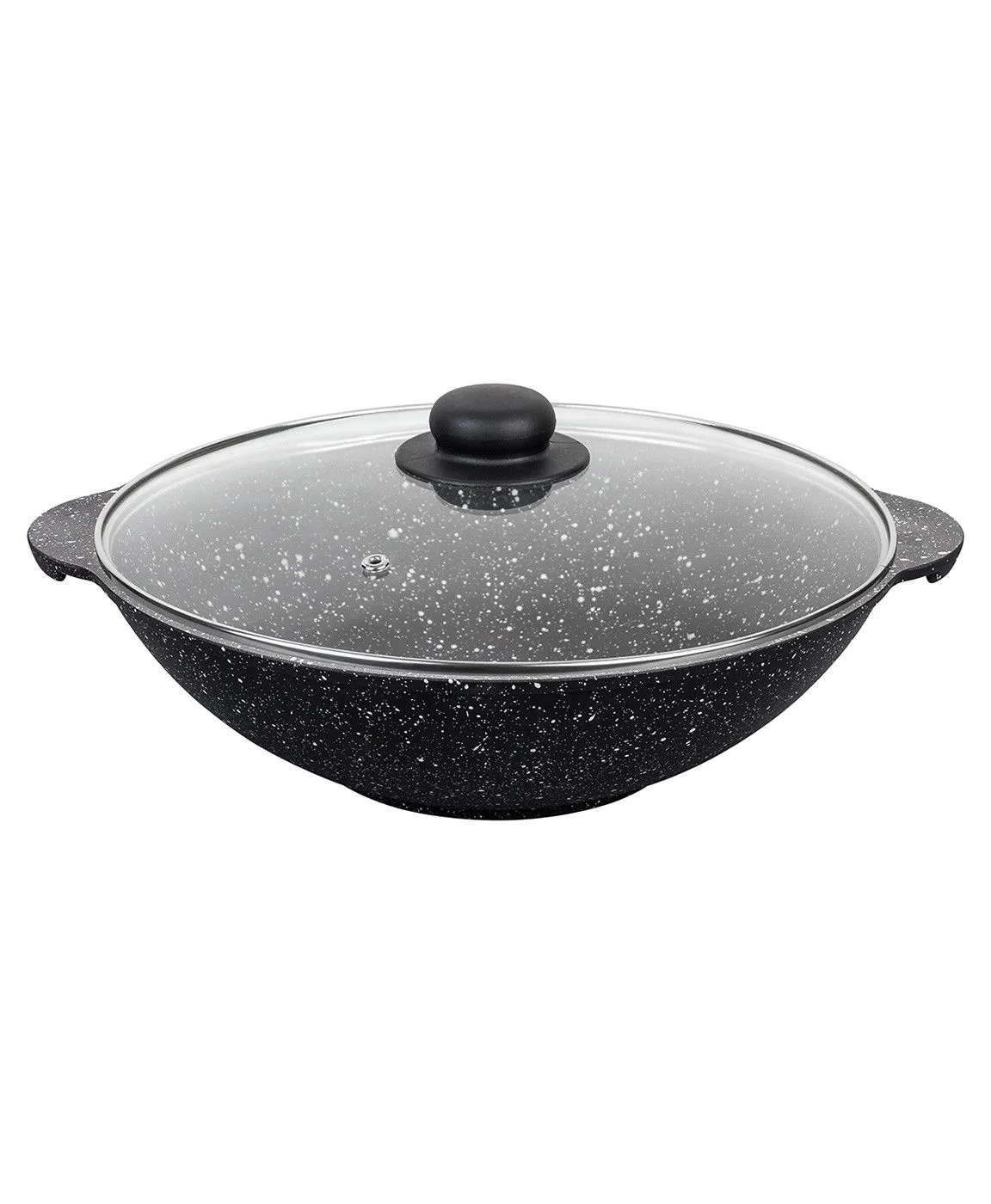 Сковорода ВОК 28 см ГАРМОНИЯ ВКУСА "Черный мрамор" 33,5*29,5*13,5 см, 3 л, с крышкой ф28, высота без крышки - 8,3 см, диаметр дна 13 см