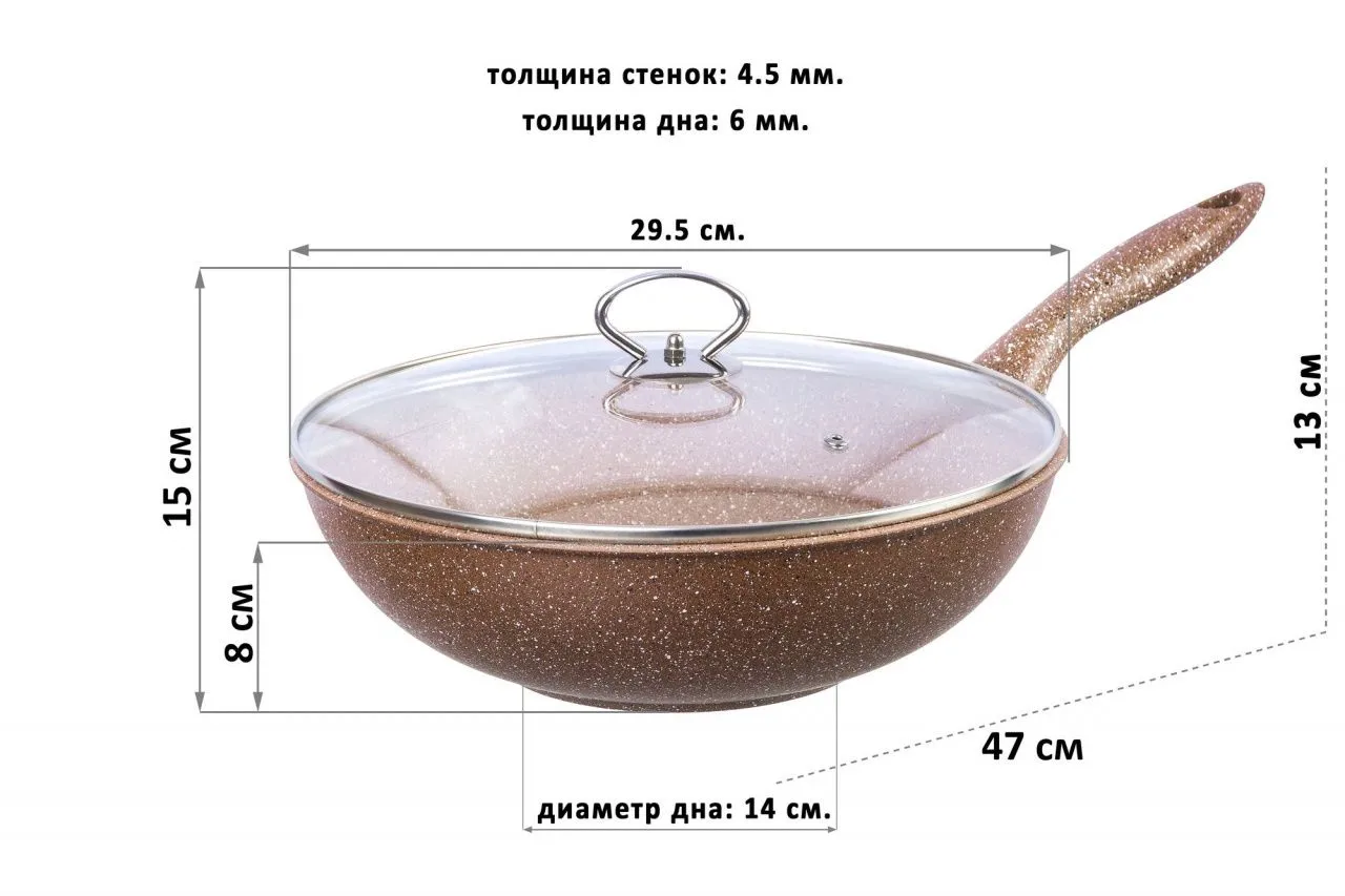 Сковорода ВОК 28 см "Гранит" 47*29,5*15 см, с крышкой ф28, высота внутренней части - 8 см, длина ручки - 19 см, несъемн. ручка, покрытие - 3-х слойно