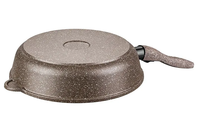 Сковорода глубокая 28 см "Мрамор" 51,5*29*11,5 см, съемная 20 см и маленькая ручка с другой стороны, без крышки, высота 7 см