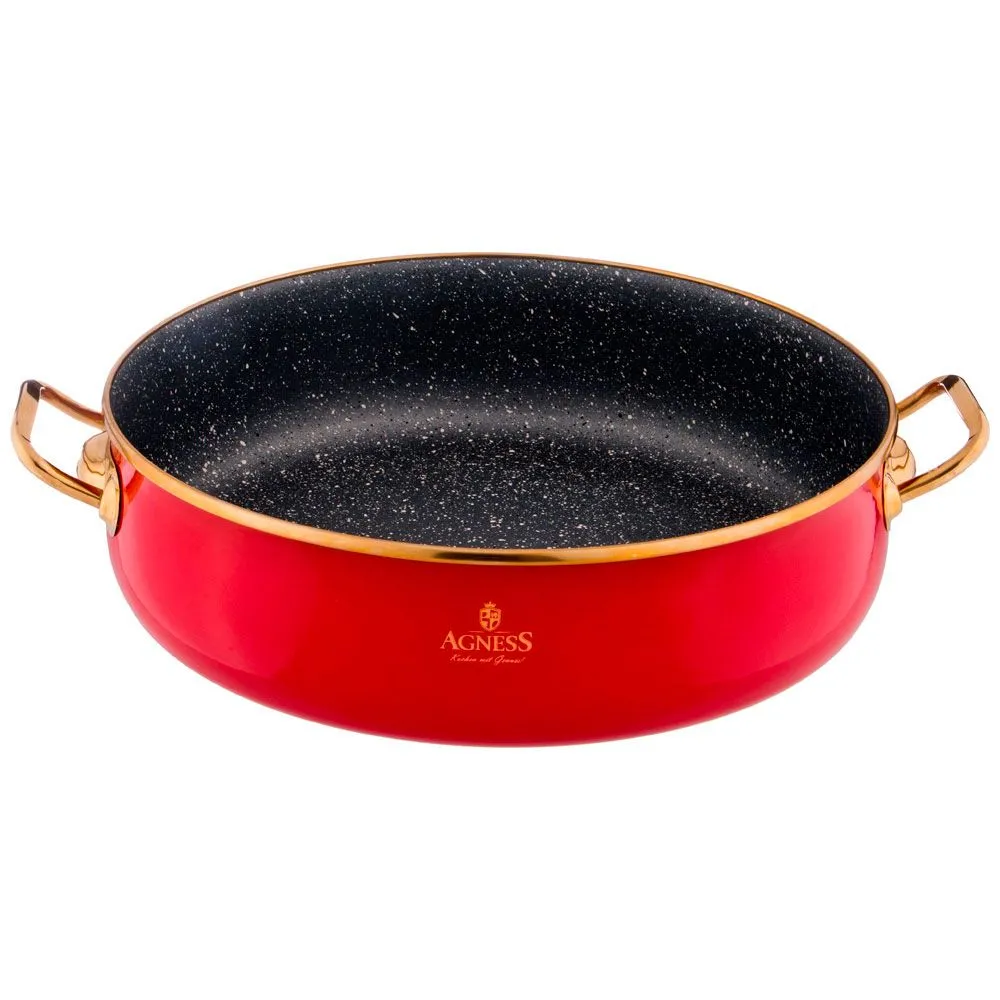 СОТЕЙНИК AGNESS ЭМАЛИРОВАННЫЙ СО СТЕКЛ. КРЫШКОЙ И АНТИПРИГАР. "МРАМОРНЫМ" ПОКРЫТИЕМ, 28СМ / 4,5Л красн