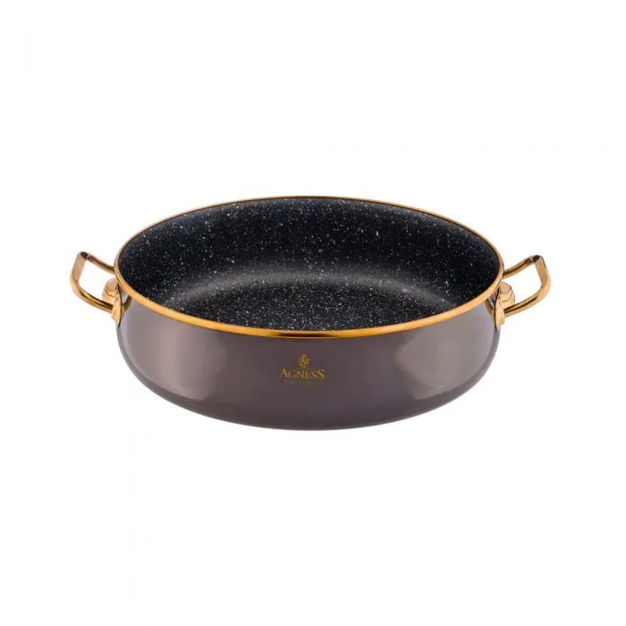 Сотейник agness эмалированный 3,5л со стеклянной крышкой и антипригарным "мраморным" покрытием, 26см 950-224