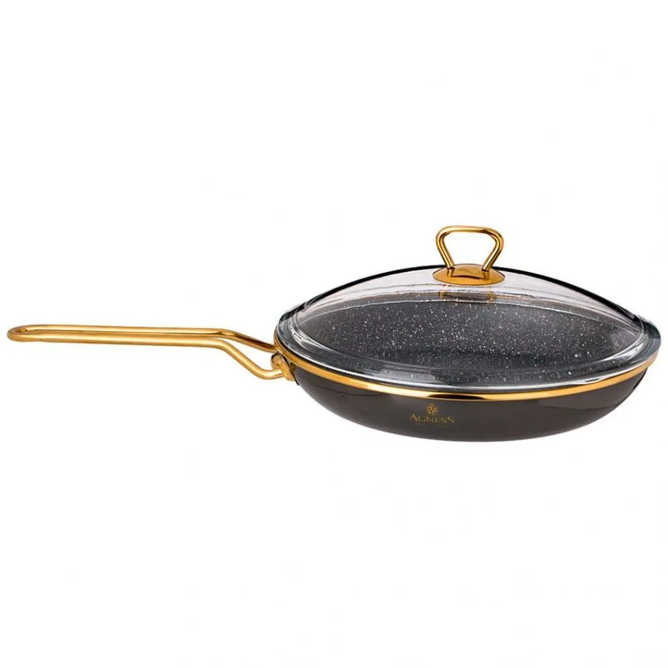 Сковорода agness эмалированная со стеклянной крышкой и антипригарным "мраморным" покрытием, 26см 950-227