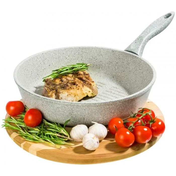 Сковорода - гриль круглая 26 см ГАРМОНИЯ ВКУСА "Серый агат" 46*27*11 см, без крышки, ручка - 19 см, высота сковороды - 6,5 см, диаметр дна - 18 см - п
