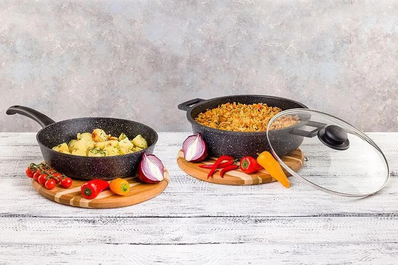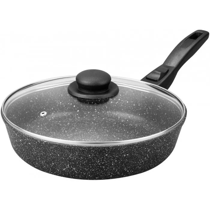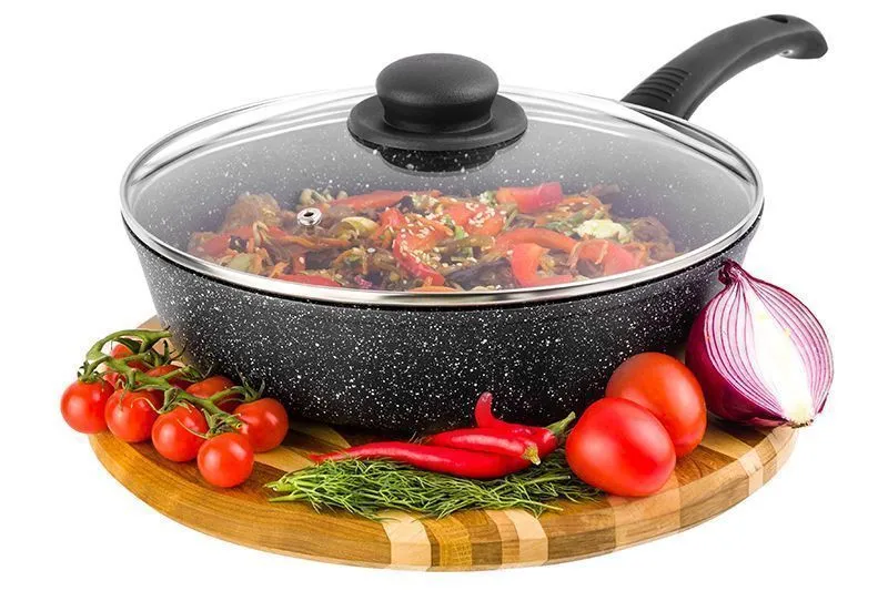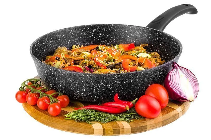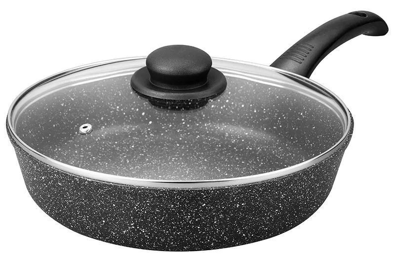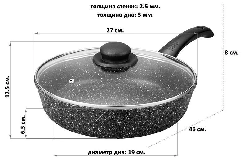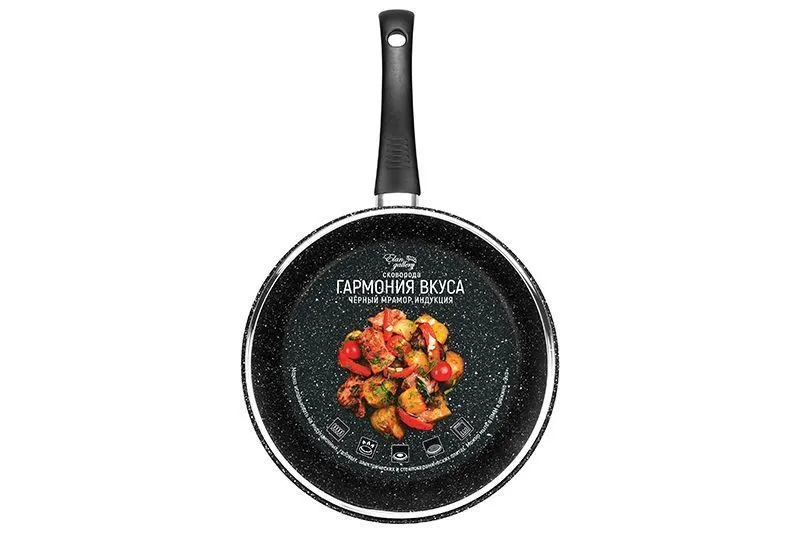 Сковорода глубокая 26 см ГАРМОНИЯ ВКУСА "Черный мрамор" ИНДУКЦИЯ 46*27*12,5 см, 2,95 л, с крышкой ф26, ручка - 19 см, высота сковороды - 6,5 см, высот