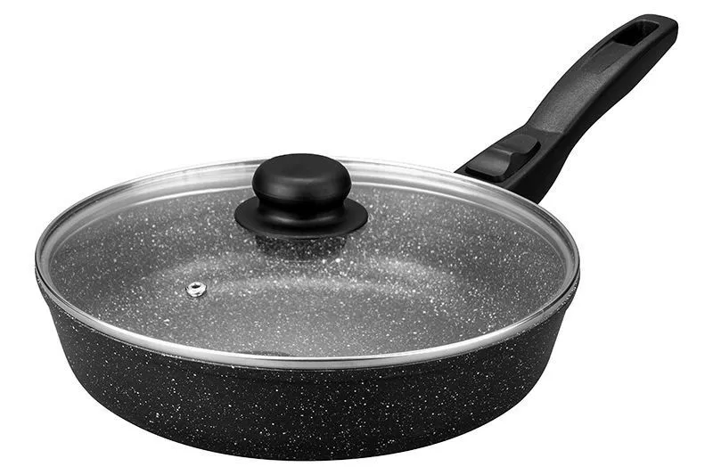 #Сковорода глубокая 24 см ГАРМОНИЯ ВКУСА "Черный мрамор" ИНДУКЦИЯ 44,5*25*12 см, 2,25 л, съемная ручка 20 см, с крышкой ф24
