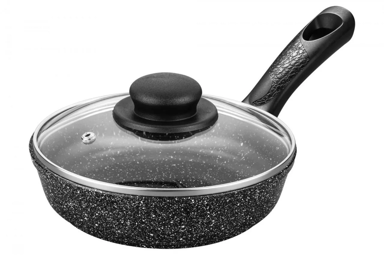 Сковорода глубокая 18 см ГАРМОНИЯ ВКУСА "Черный мрамор" 33,5*19*10 см, с крышкой ф18, ручка - 14,5 см