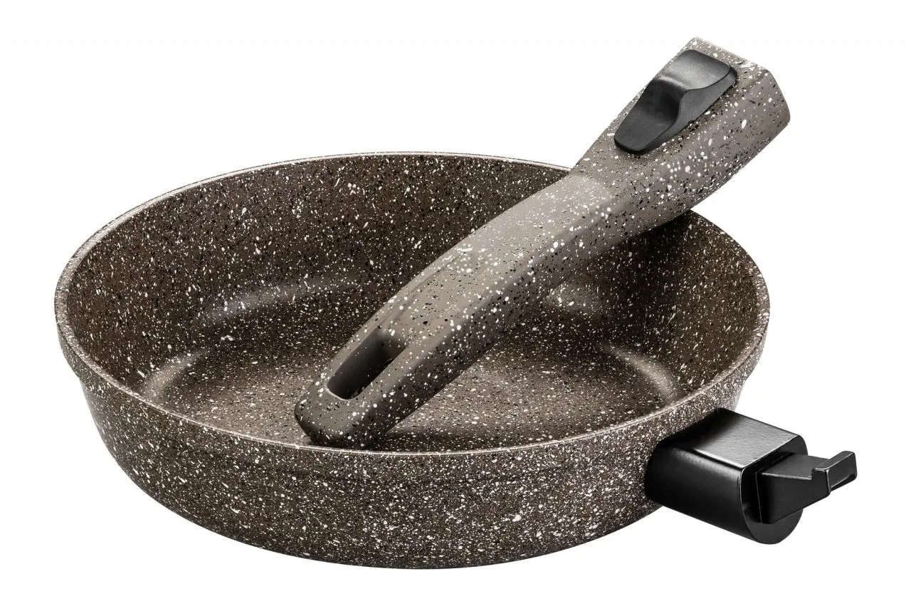 #Сковорода глубокая 20 см ГАРМОНИЯ ВКУСА "Коричневый опал" 41*21*10 см, съемная ручка, с крышкой ф20, ручка - 20 см, высота 5 см