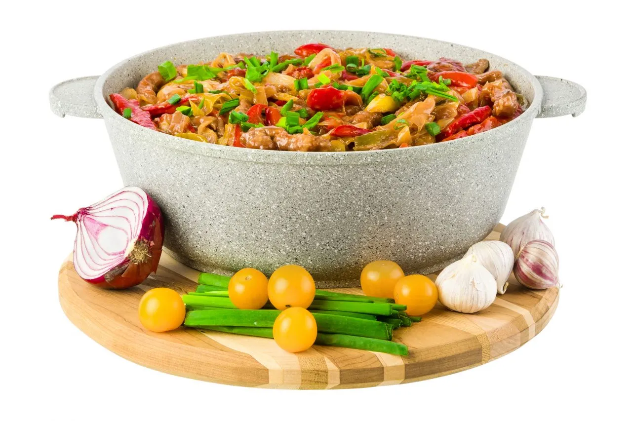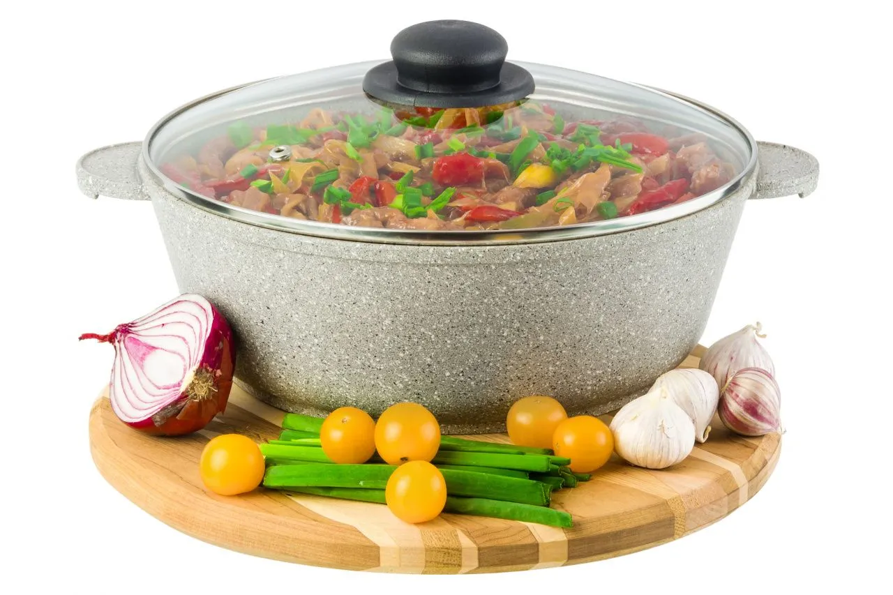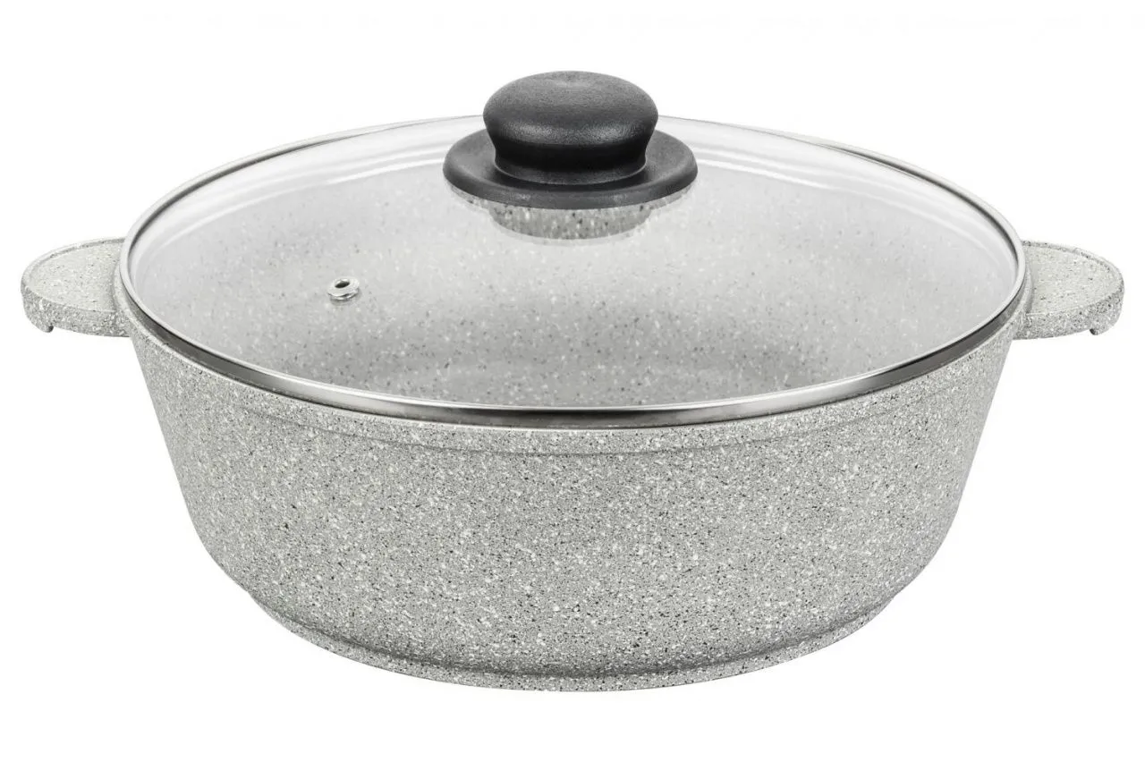 Жаровня (сотейник) 26 см ГАРМОНИЯ ВКУСА "Серый агат" 32,5*27*14,5 см 3,7 л, с крышкой ф26, высота внутренней части - 8,4 см, диаметр дна - 20 см - по