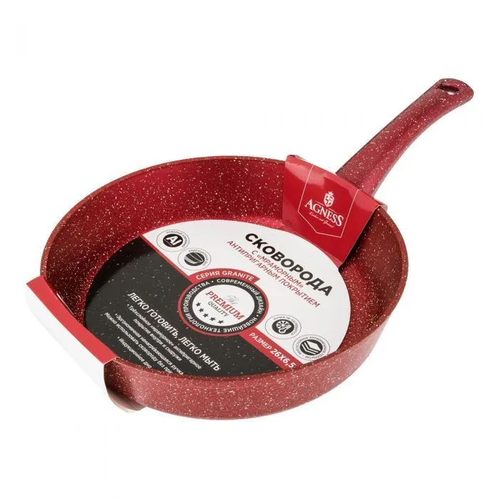 СКОВОРОДА AGNESS ГЛУБОКАЯ С АНТИПРИГАРНЫМ "МРАМОРНЫМ" ПОКРЫТИЕМ, СЕРИЯ GRANITE, 26Х6,5СМ